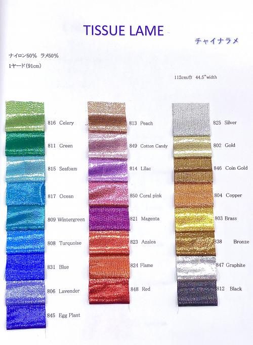 例 ) 白の部分→チャイナシルクNo.○○ 水色の部分→LAME No.△△